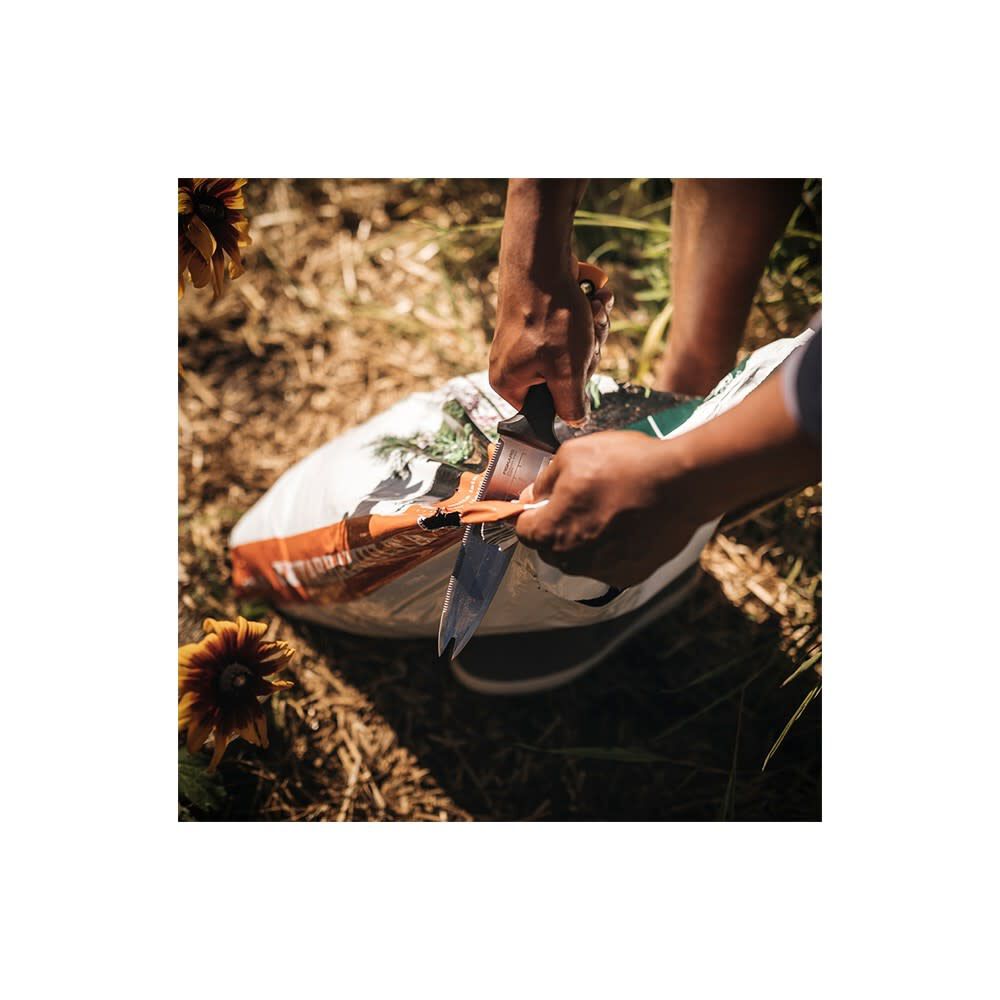This dual-edged knife features a sharp, precision-ground edge for cutting through sod and root systems and a serrated edge for sawing through thick growth.