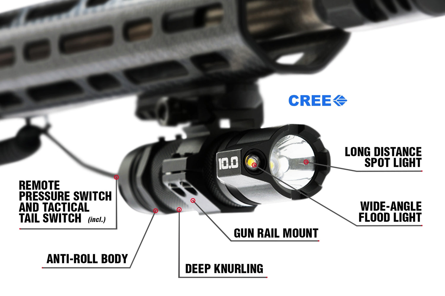 1000 Lumens with 5 modes including SOS and disorienting strobe