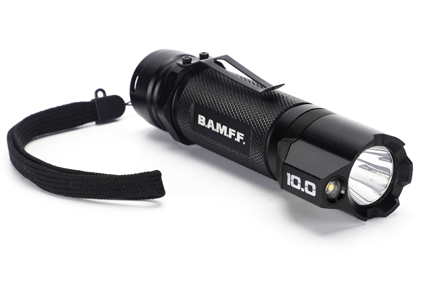 Also, as a unique emergency feature, the BAMFF 10.0 comes with a AAA battery cartridge for those times when you can’t charge your rechargeable 18650 battery, thus ensuring you are never left in the dark.