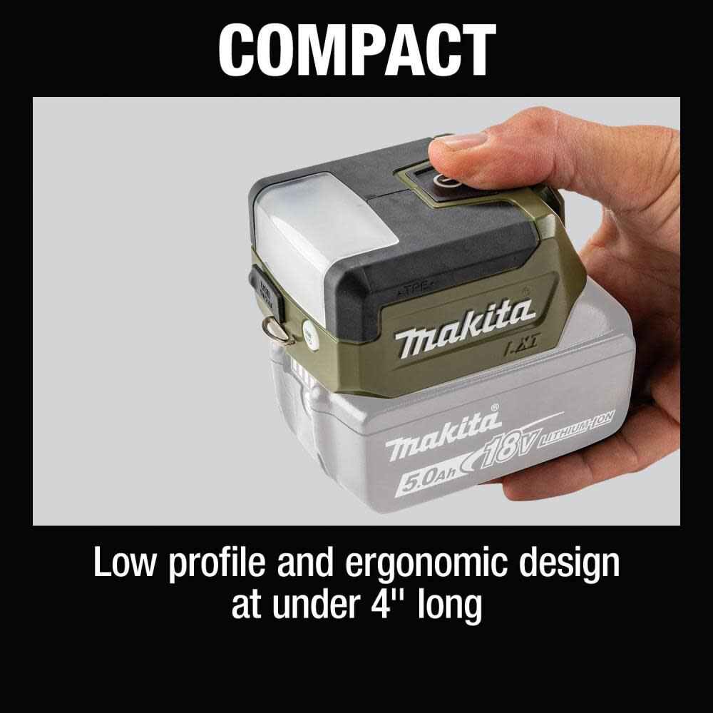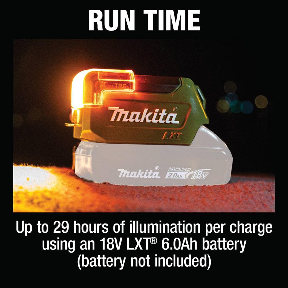 The MakitaÆ Outdoor Adventure LXTÆ 18 Volts LED flashlight is built with 3-mode operation delivering 300 lumens at top/side lights, 150 lumens at top light, 150 lumens at side light configurations.