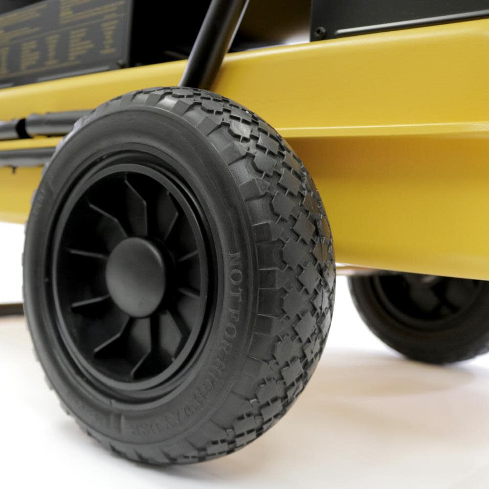 - Split upper shell and flat-free foam filled tires for easy maintenance