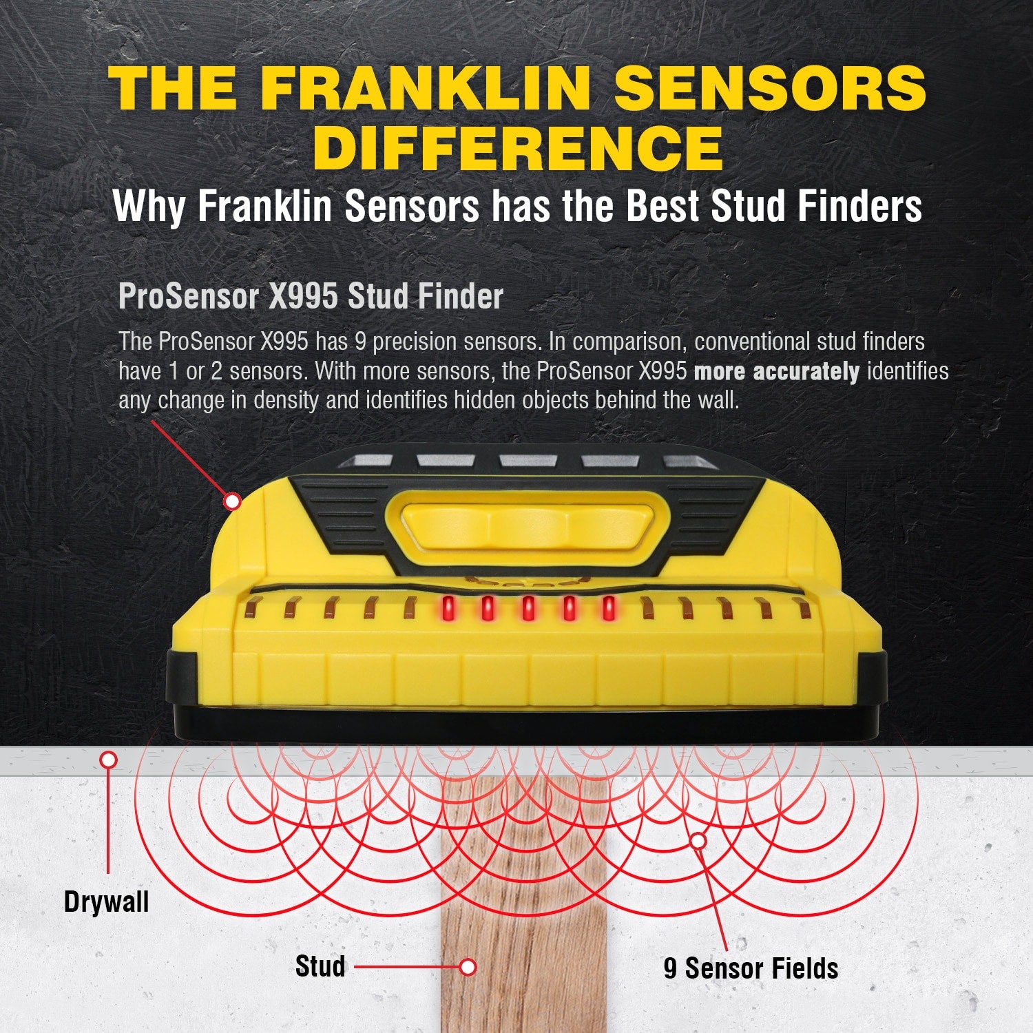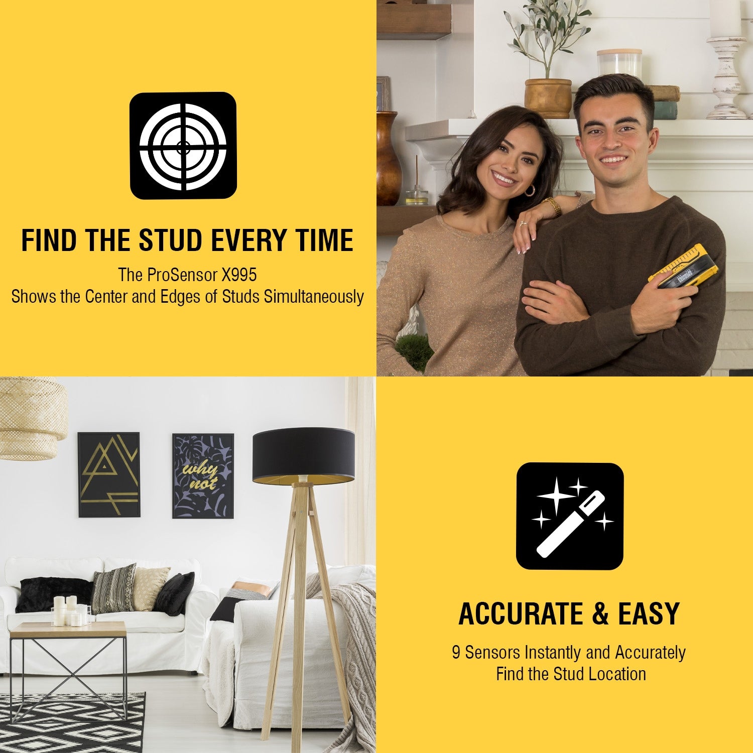 ACCURATE: More sensors = More accuracy and with 9 sensors and 15 precision LEDs the ProSensor X995 accurately displays the center and edges of studs simultaneously and has a max detection depth of 1.5 IN.