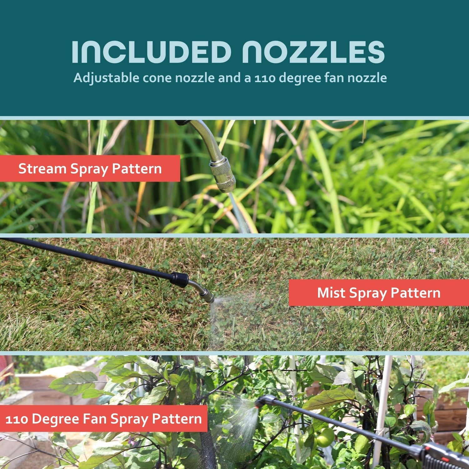 Two spray tips included - 110° fan nozzle and an adjustable cone nozzle (adjust from a jet stream to a mist)