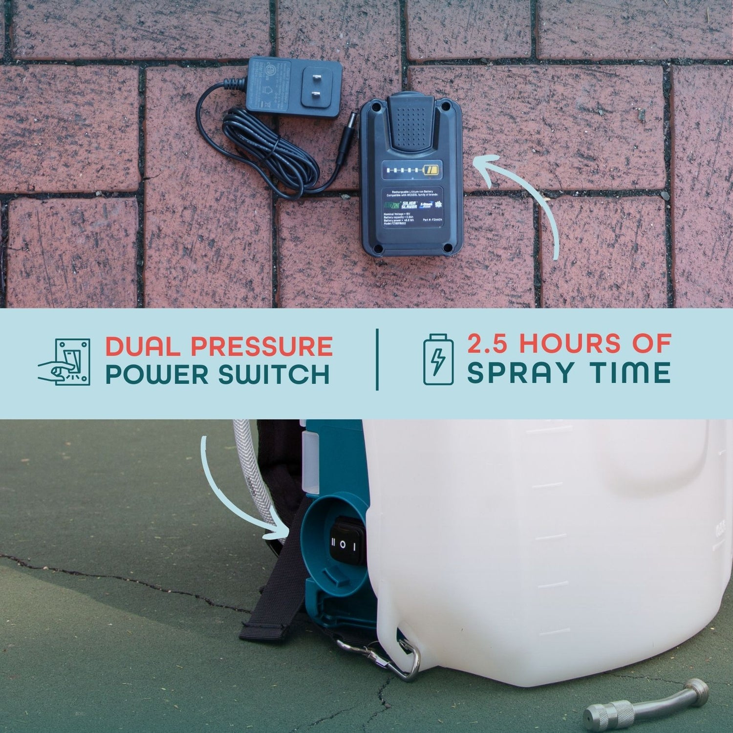 18-Volt rechargeable battery - spray continuously for up to 2.5 hours on 1 charge of the 18-Volt Lithium-ion battery (charges in 2 hours)