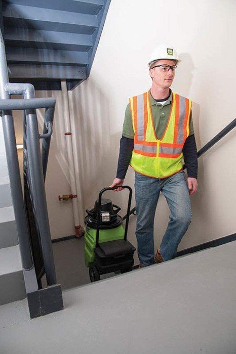 Designed for the job site with 15' hose, large heavy-duty wheels and removable accessory box.