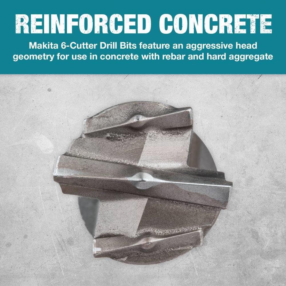 Makita SDS-MAX 6-cutter bits are ideal for a range of general purpose drilling applications in concrete and reinforced concrete.