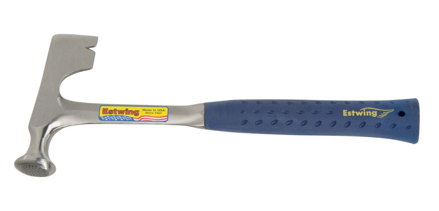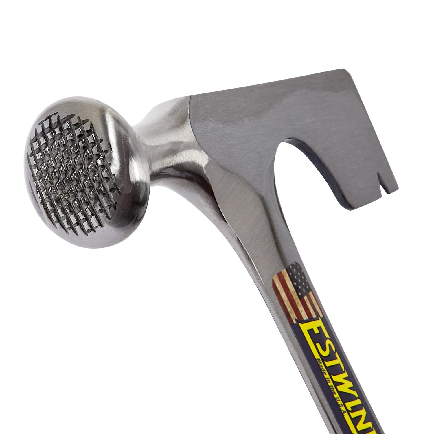 Scored and rounded face for easy and proper nail driving, blade edge for scoring drywall.