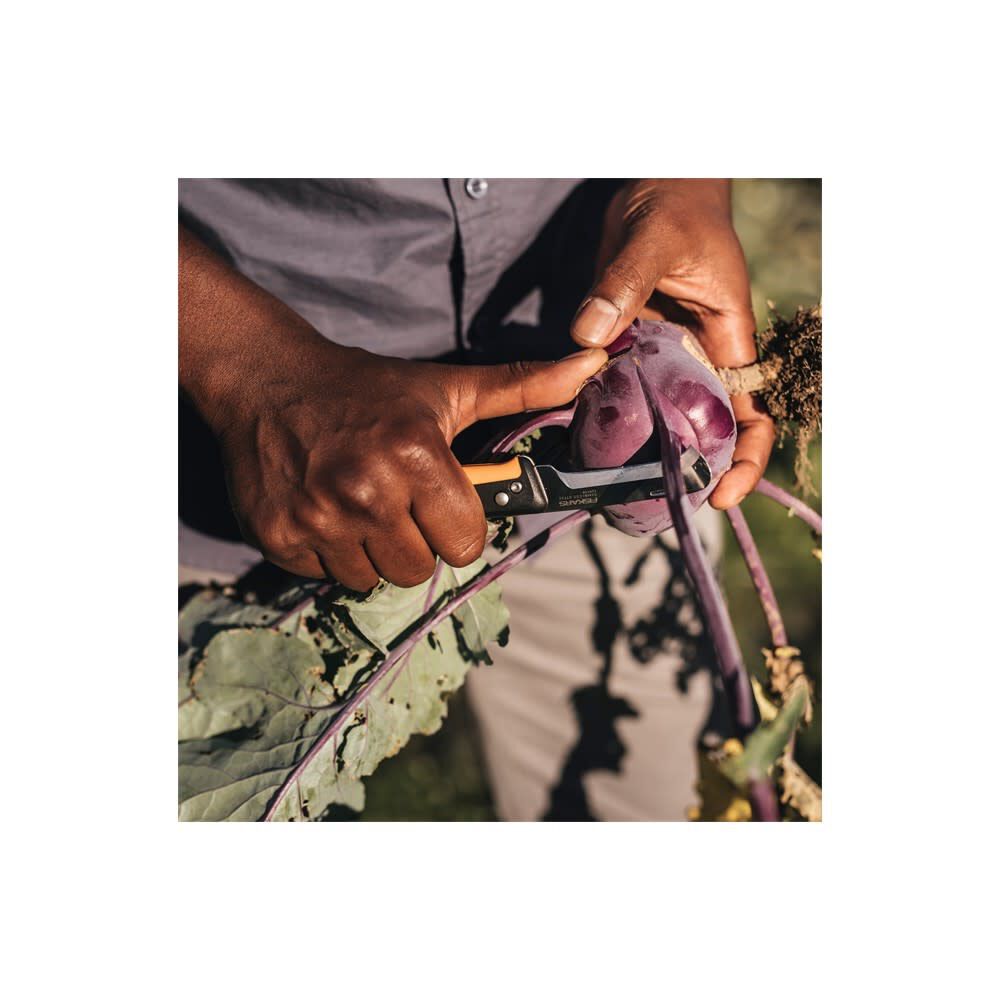 - Fiskars® Folding Produce Knife is ideal for harvesting from smaller stalks and stems