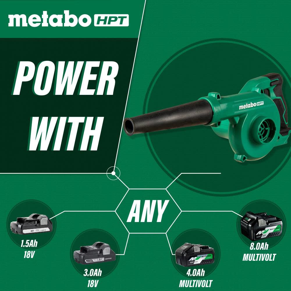 The 18V Cordless Compact Blower is part of the expanding MultiVolt System of 18-Volt and 36-Volt power tools from Metabo HPT.