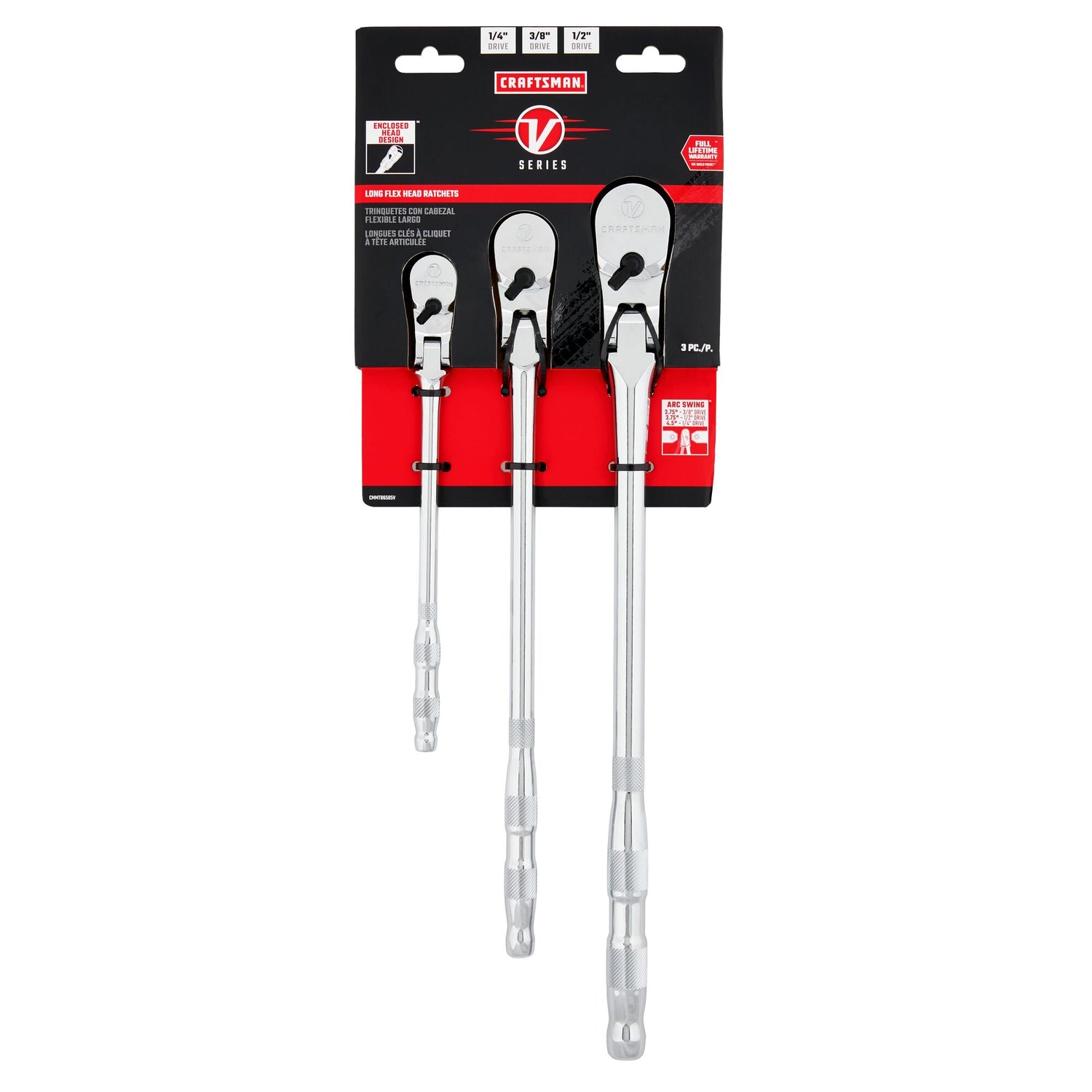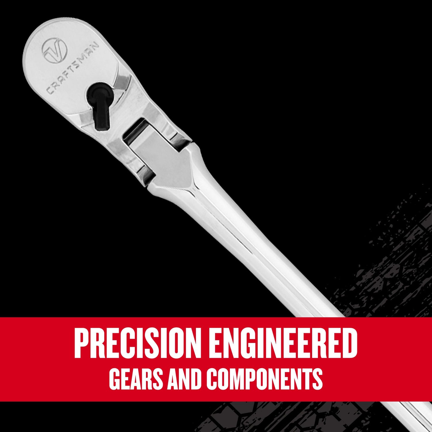 Engineered for professionals, these Long Handle Flex Head Ratchets are constructed with Precision Engineered Gears that provide users with improved tool life and durability.