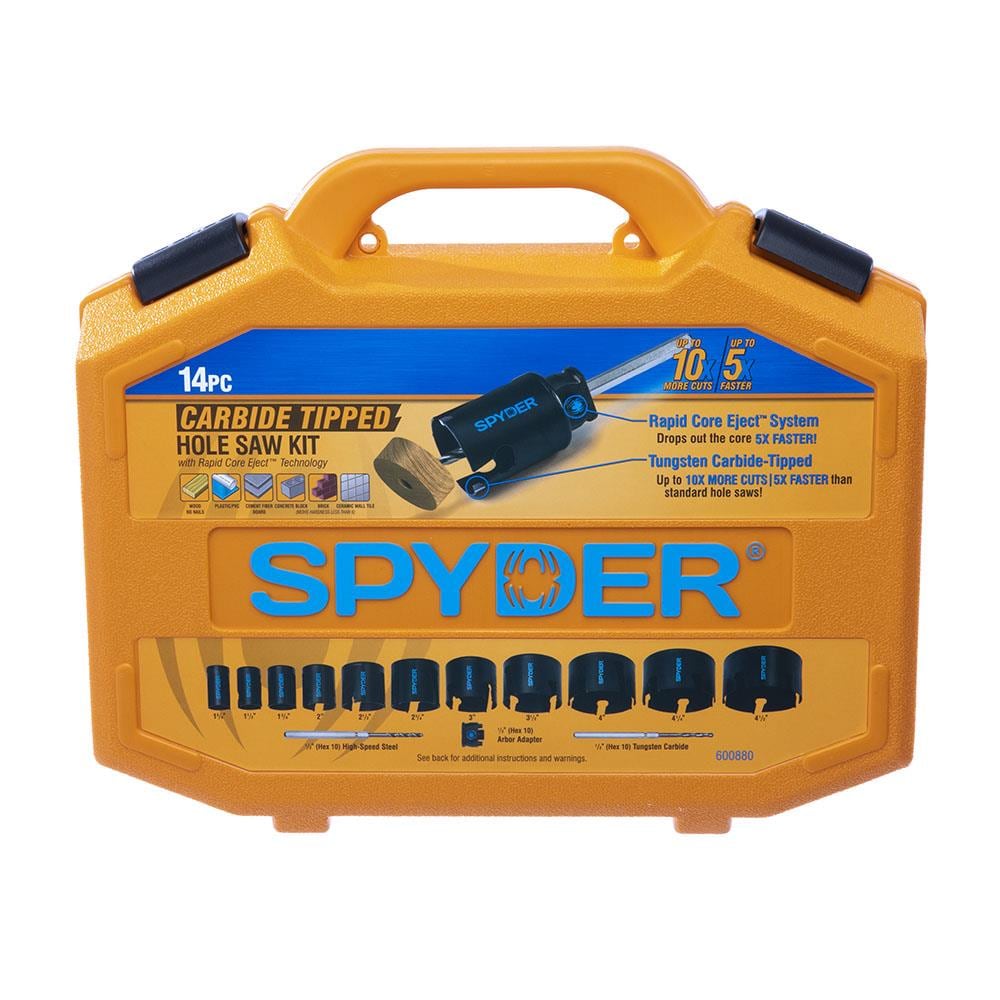 All TCT, Tarantula, and Bi-Metal hole saws fit on Spyder Rapid Core Eject arbors and pilot bits (sold separately), and on universal hole saw arbors.