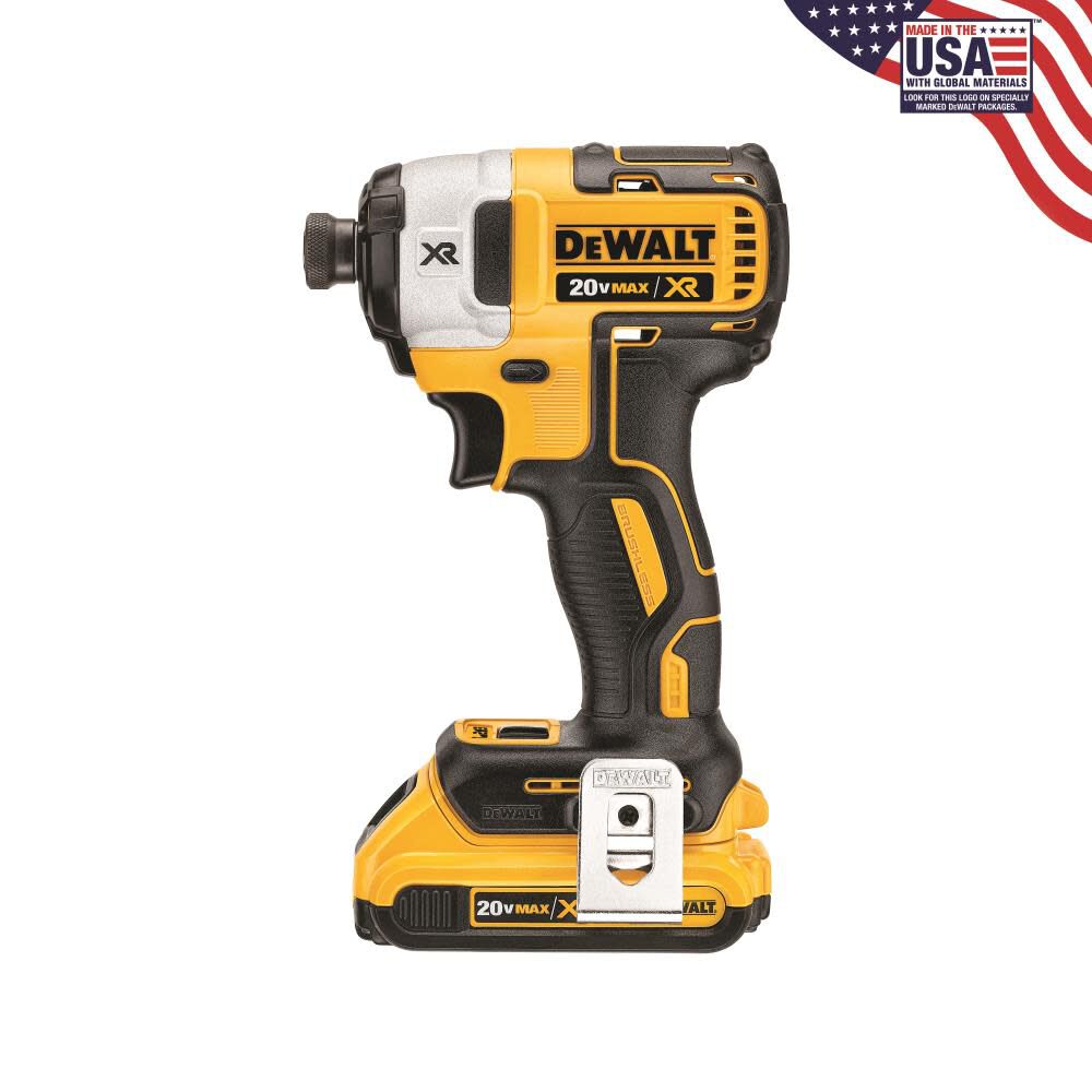 The DCF887D2 20 V MAX XR brushless 1/4 In. 3-speed impact driver is compact for fitting in tight spaces and increasing productivity.