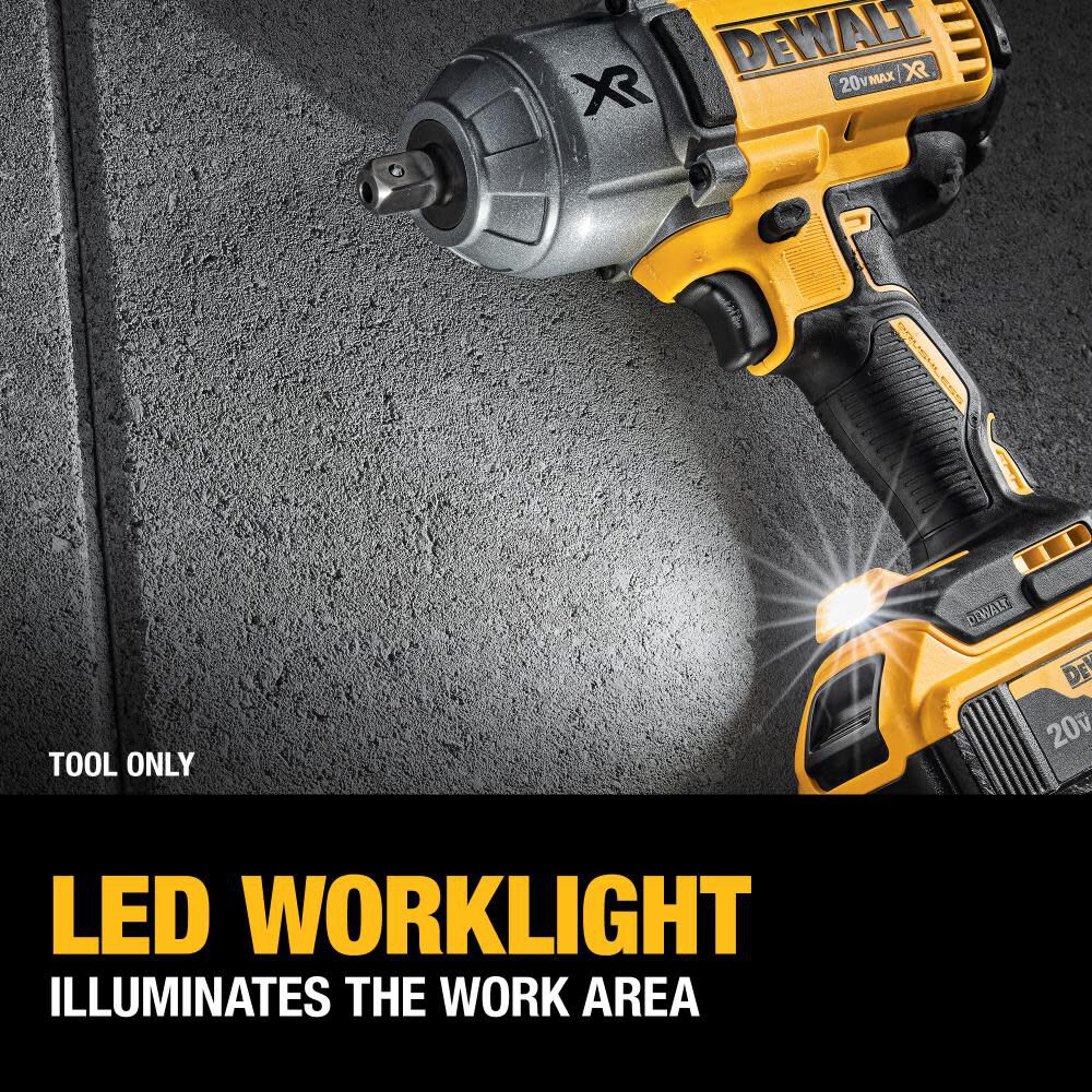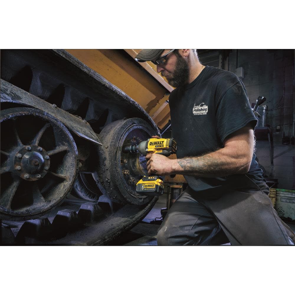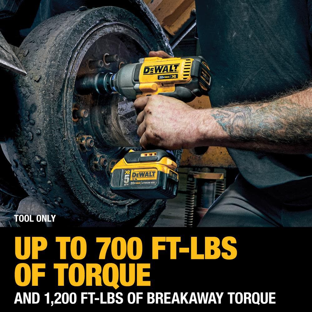 Wrench is run by a 20 Volt XR battery and a brushless motor that delivers an optimum torque rating of 700 ft-lb as well as a breakaway torque rating of 1200 ft-lb.