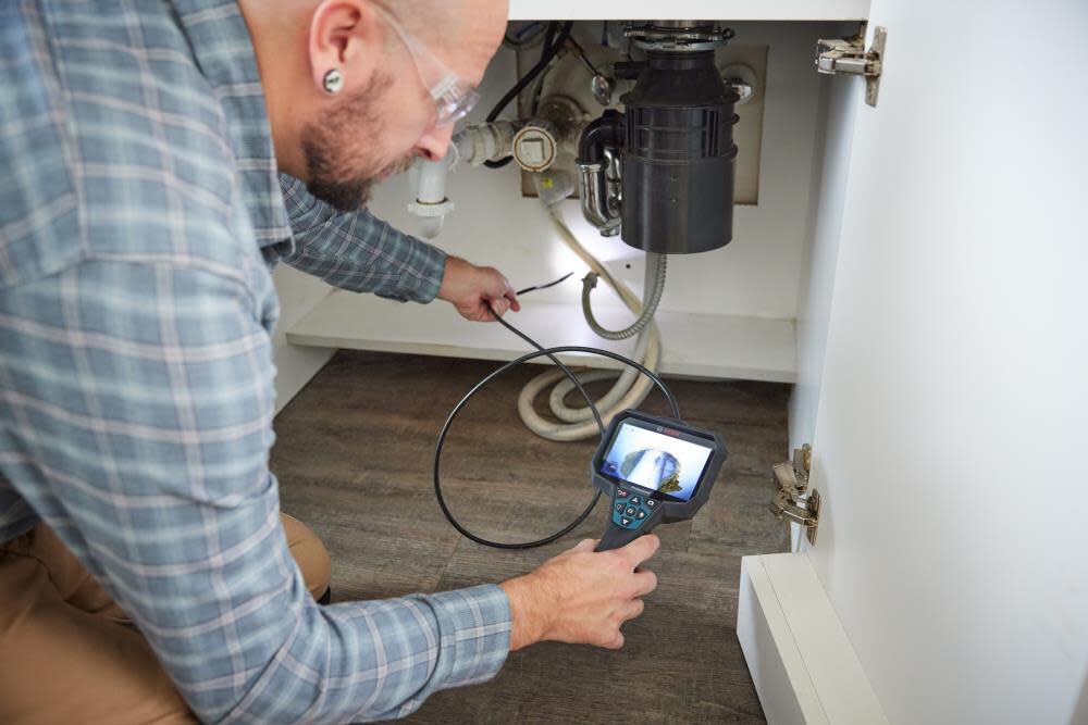 The inspection camera is efficiently powered by the Bosch 12V Max battery system for long-lasting reliability.