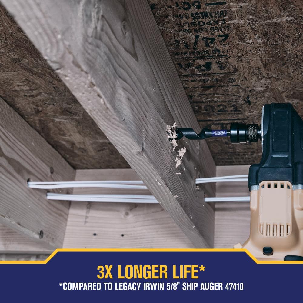 Designed to deliver 3X longer life (On average compared to legacy IRWIN 5/8-in ship auger bit, SKU #47410) in challenging wood-drilling applications, this Auger Bit features a re-sharpenable blade and black oxide coating for enhanced corrosion resistance.