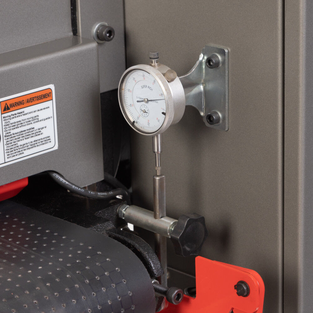 - Design allows operator to safely finish multiple pieces quickly without having to hold material producing consistent finished material thickness