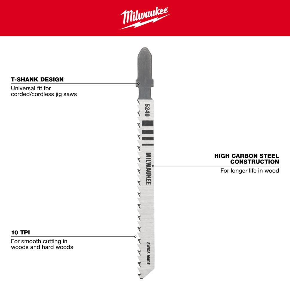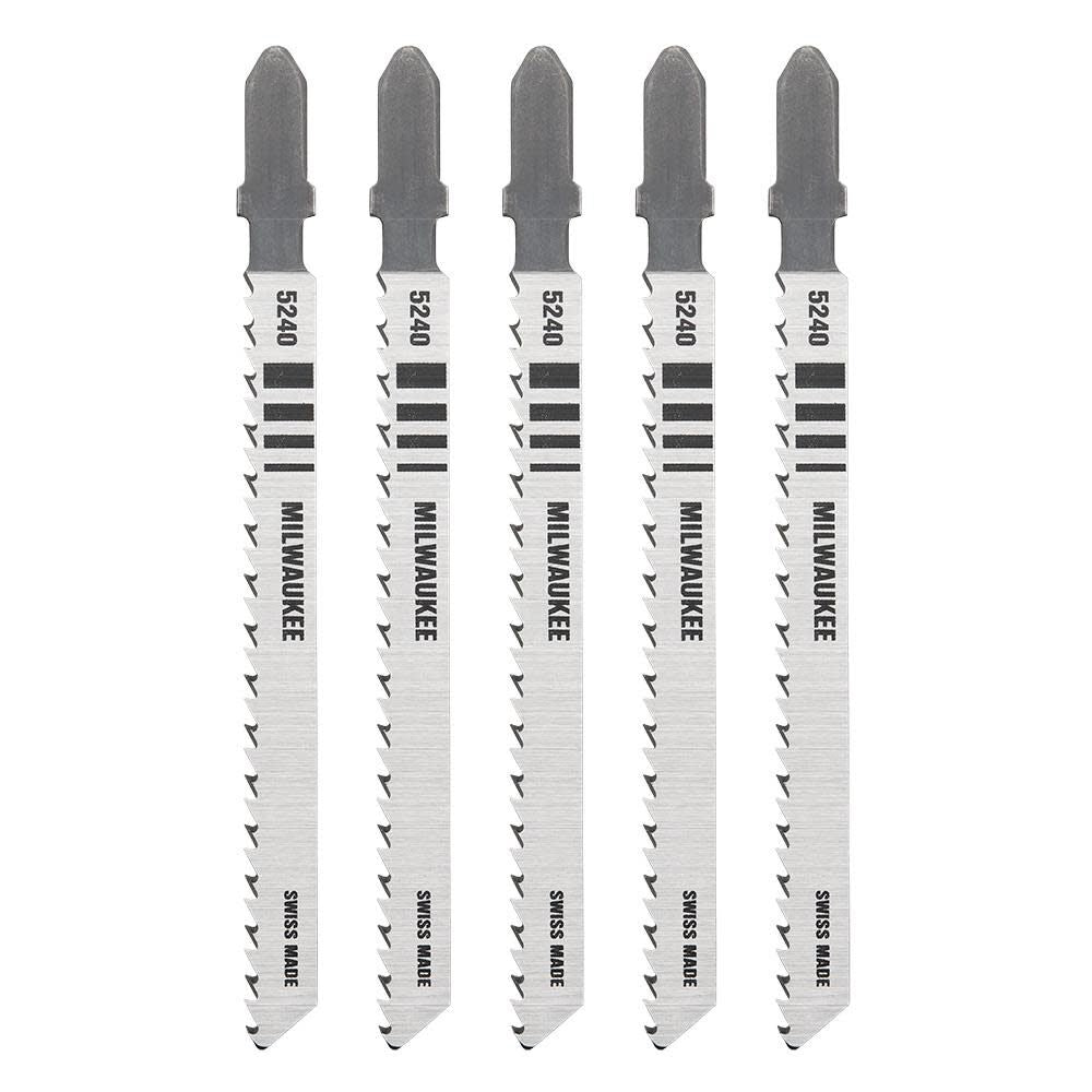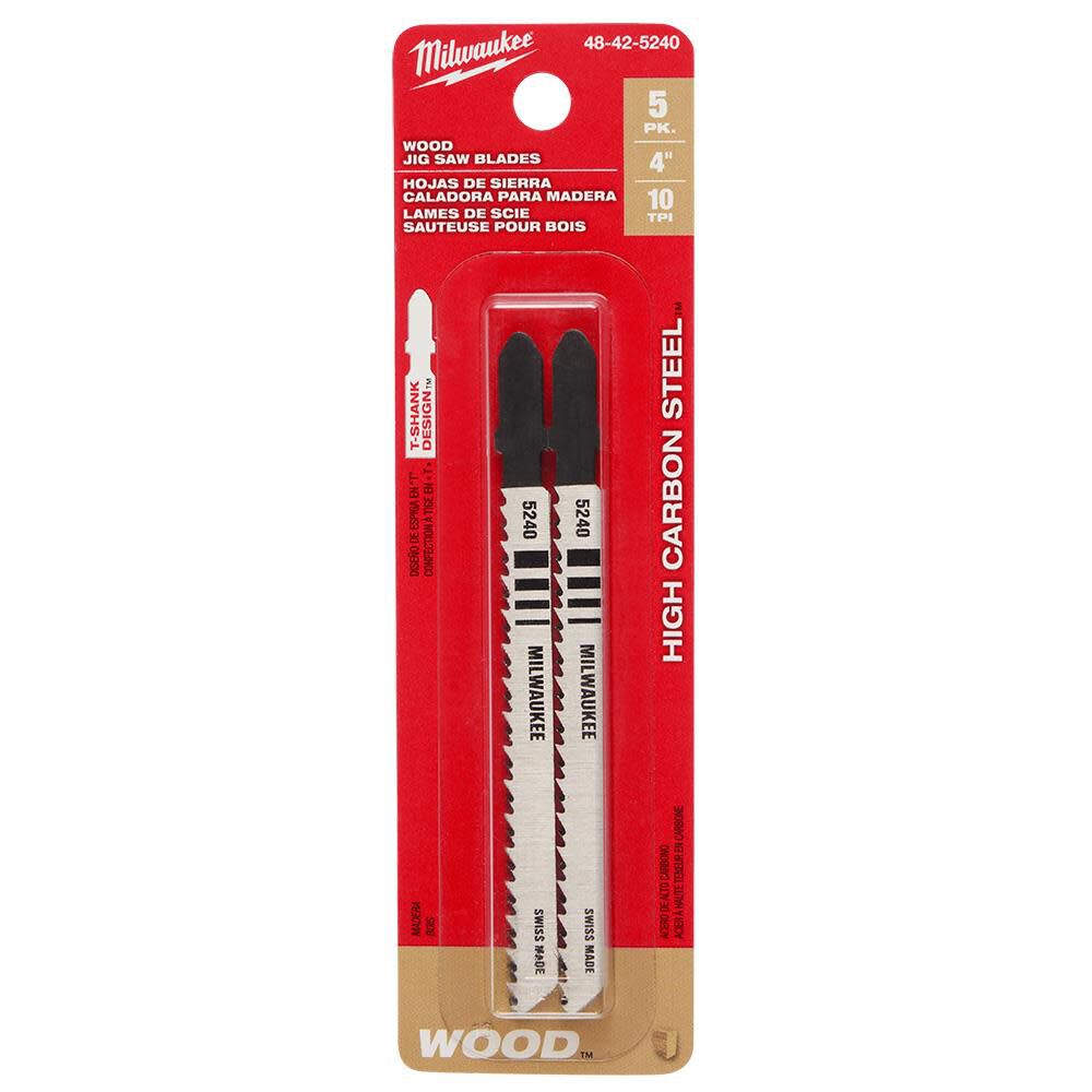 Milwaukee 4in 10TPI T-Shank Wood High Carbon Steel Jigsaw Blades 5pk