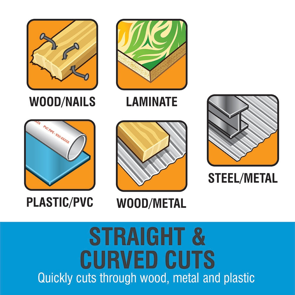 For cutting steel, nail embedded wood, soft and hard woods, and more