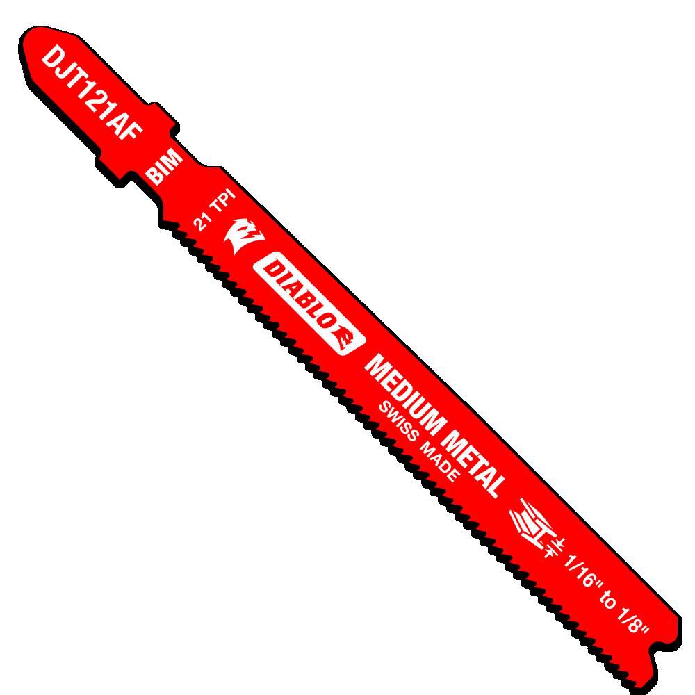DiabloÄôs bi-metal teeth jig saw blades are specifically designed for maximum durability, longer life and speed in medium metal applications ranging from 1/16Äù to 1/8Äù thickness.