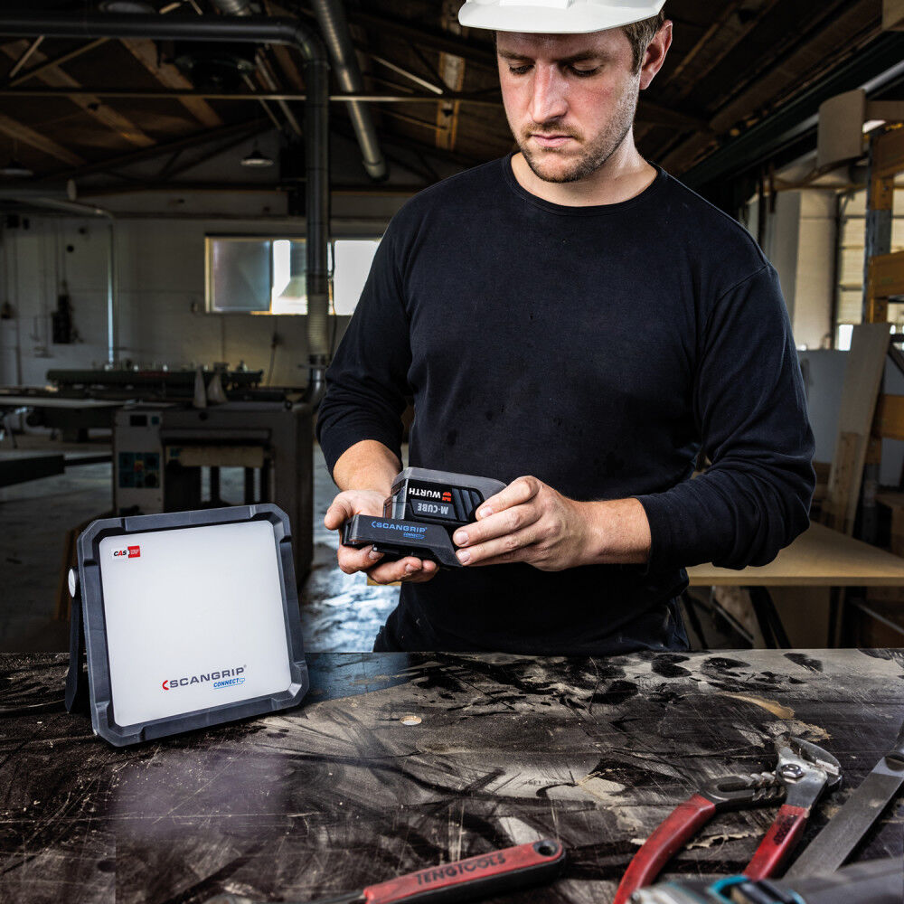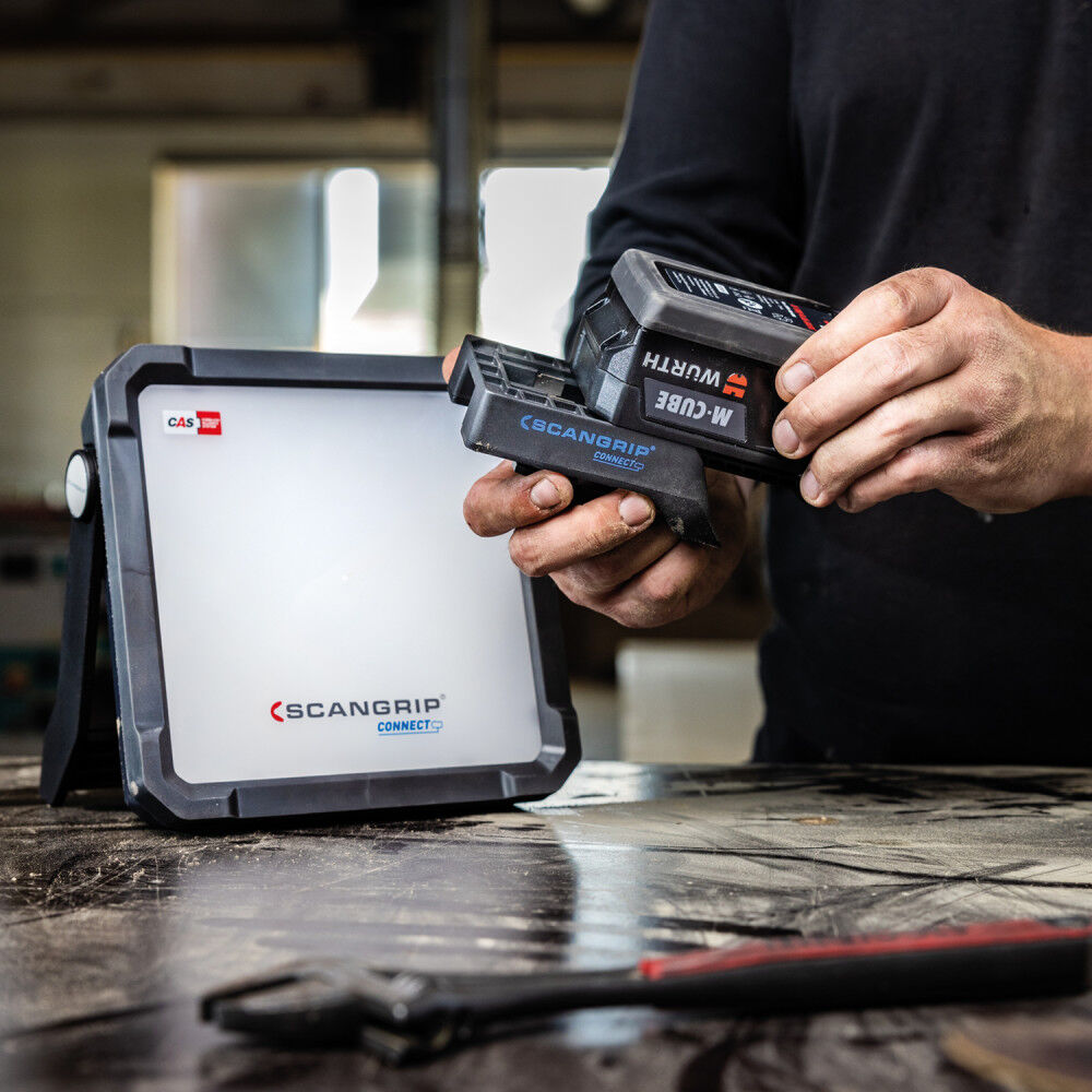 Vega 2 Connect is compatible with Metabo/CAS battery system 18V and all other 18V/20 V battery packs from leading power tool brands by using the Scangrip Connector.