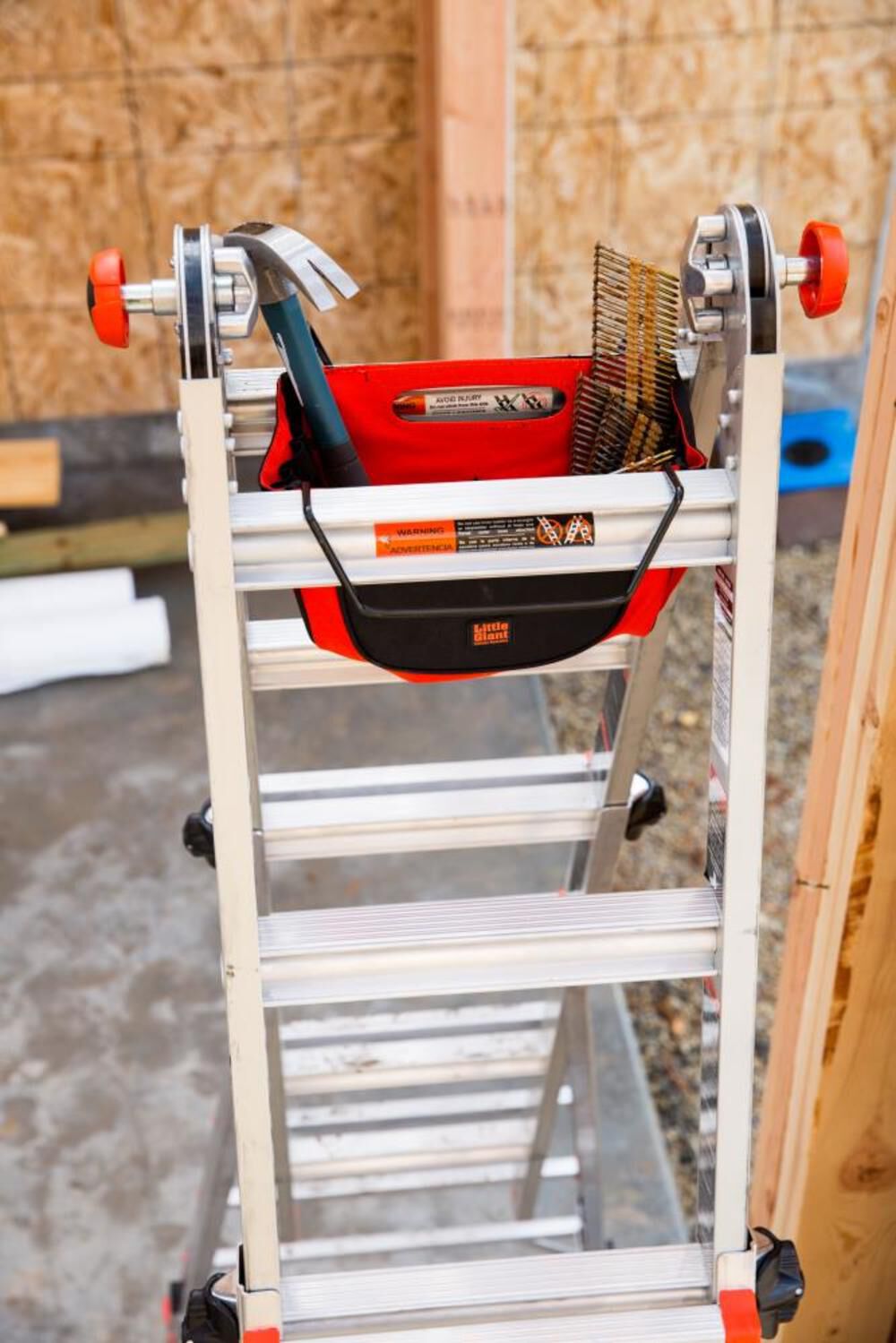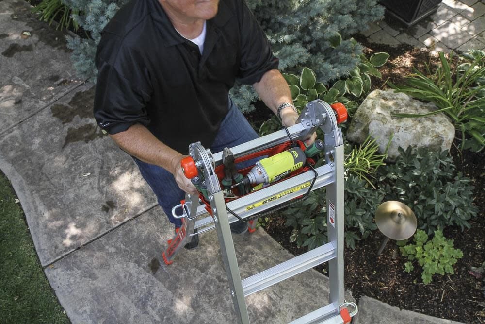 The Cargo Hold stores conveniently between the top two rungs of your Little Giant Ladder System.