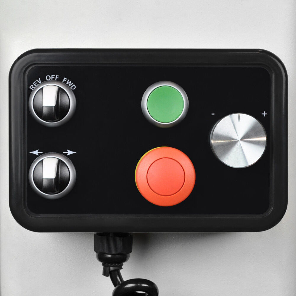 Rikon's heavy duty variable speed lathe features an innovative sliding bed that increases your turning capacity with just a turning of a switch.