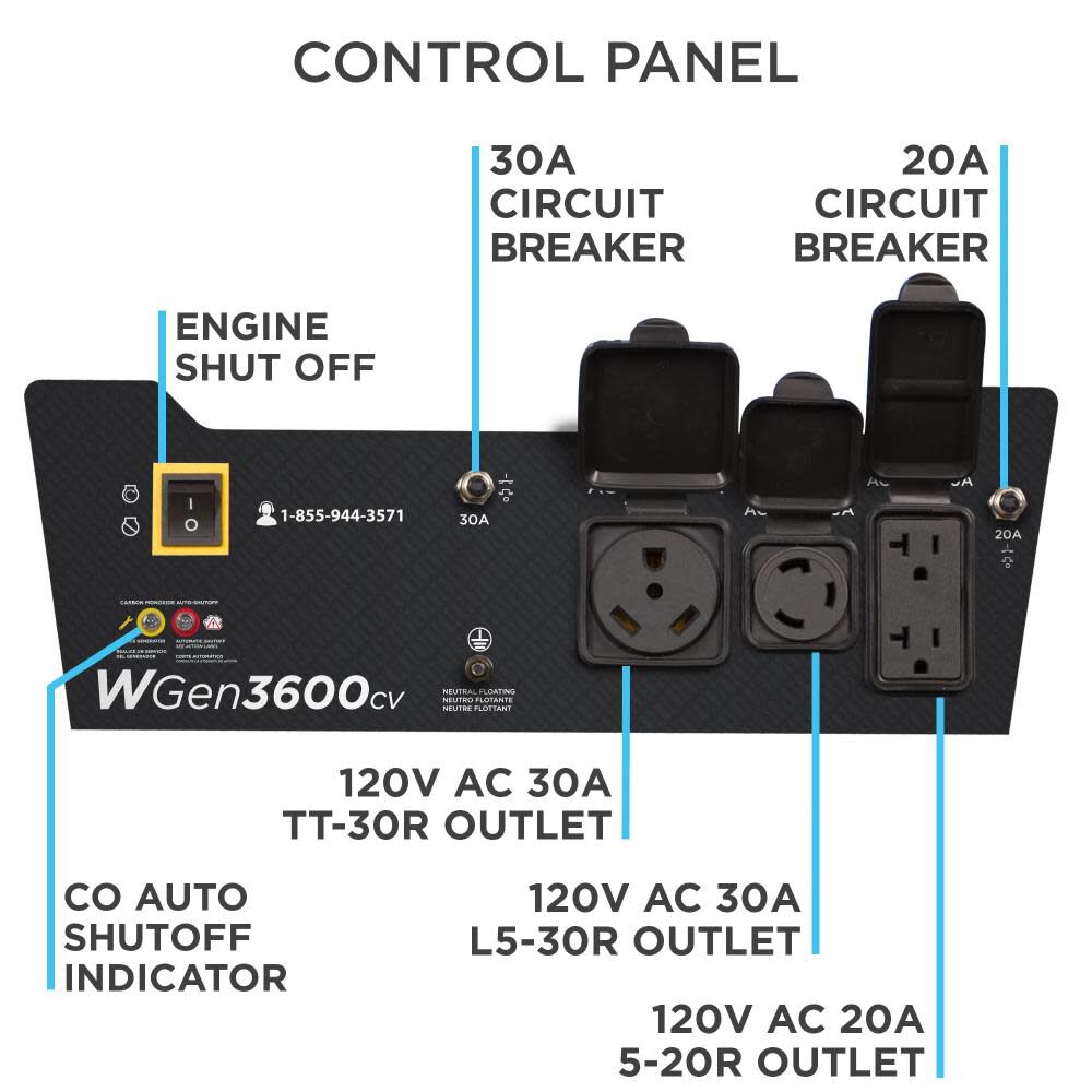 An intuitive control panel makes the WGen3600cv simple and easy to use with guided yellow touchpoints.