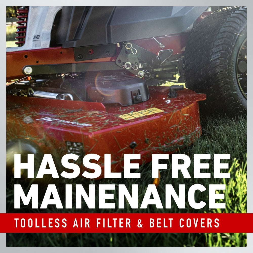 Hassle-free maintenance, spend less time maintaining your mower with toolless oil change and filter, simply flip open the air filter to replace it and the easy removal of the oil drain tube allows for fast drainage and refilling