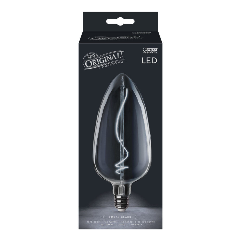 Enjoy all the benefits of advanced LED energy-saving technology with the dimmable Feit Electric 5.5W original vintage LED smoke glass light bulb.