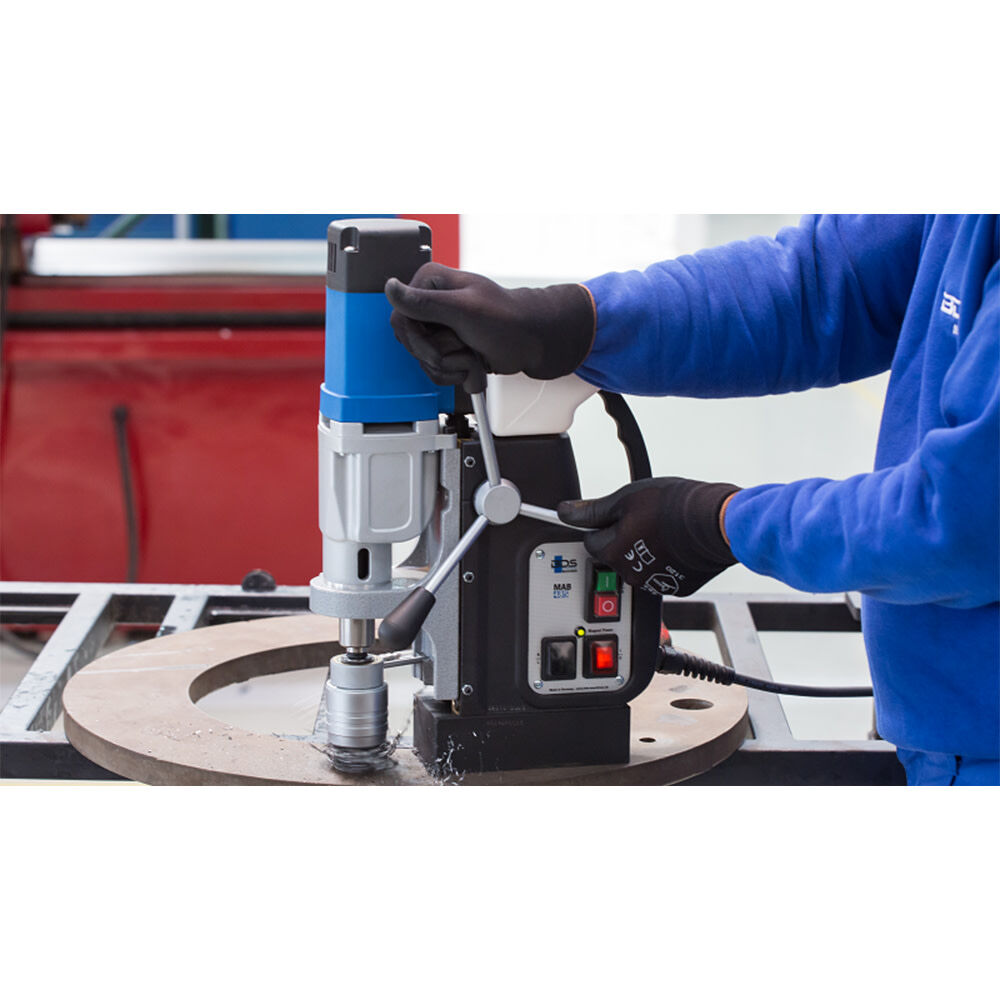 - Emergency-off function: electronic safety sensor shuts down drill motor if magnet loses contact with material to protect operator and equipment