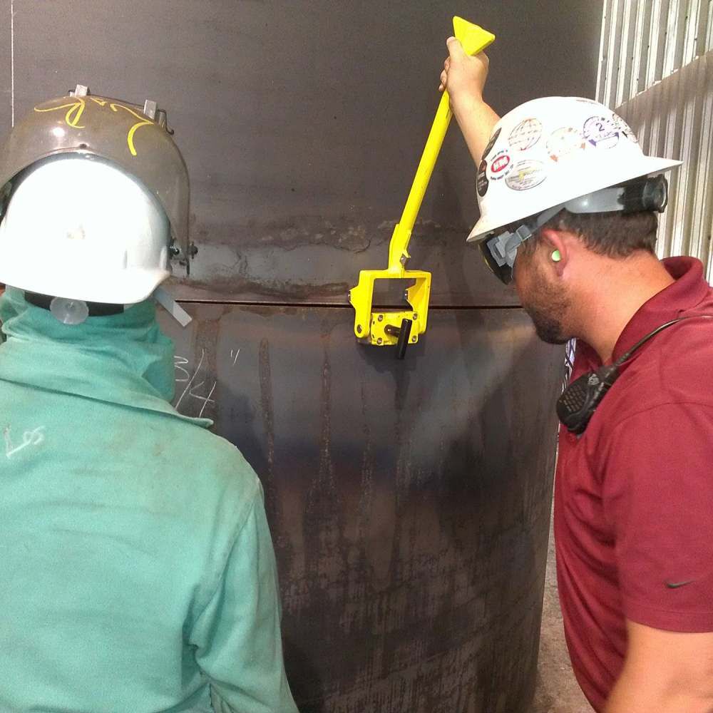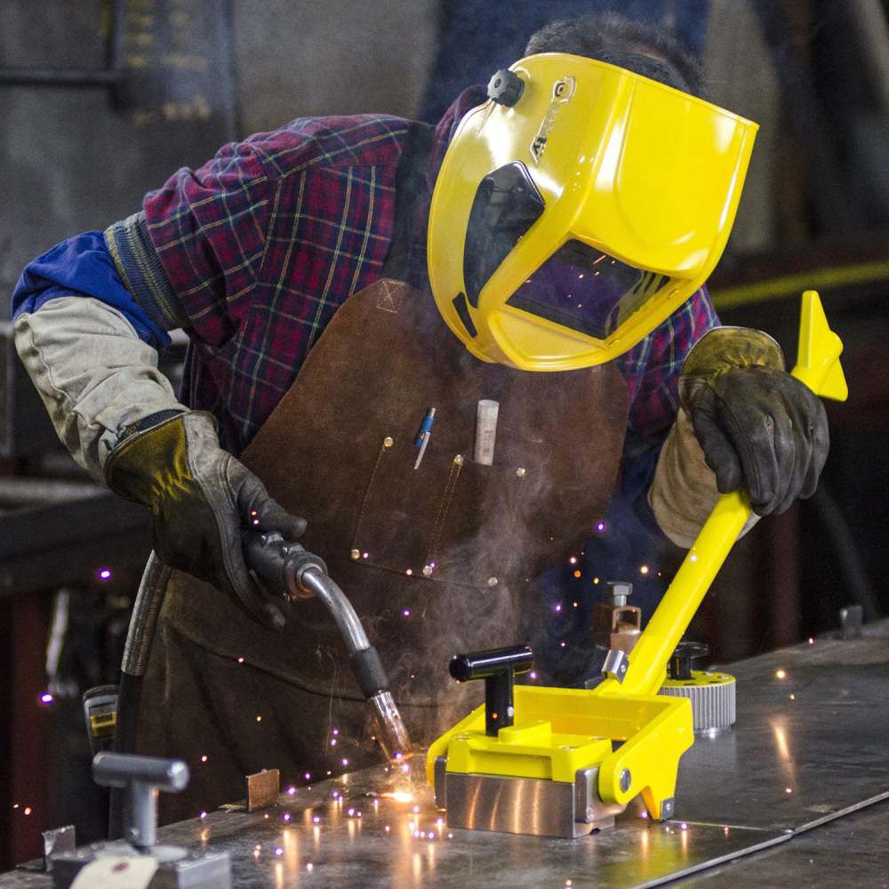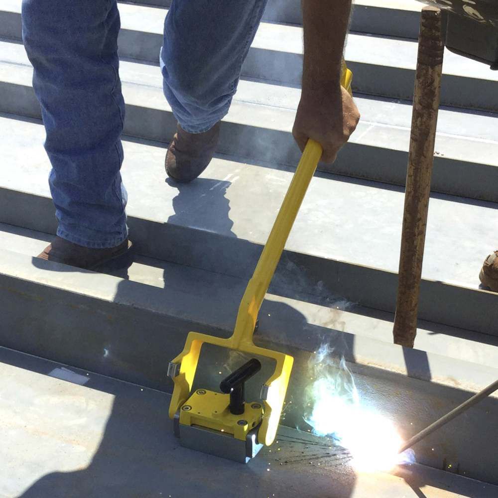 Equalize high and low points between steel gaps by placing the magnet on low, pry on high and weld! Switch on and off 1024 Lbs of magnetic hold force by rotating the black knob.