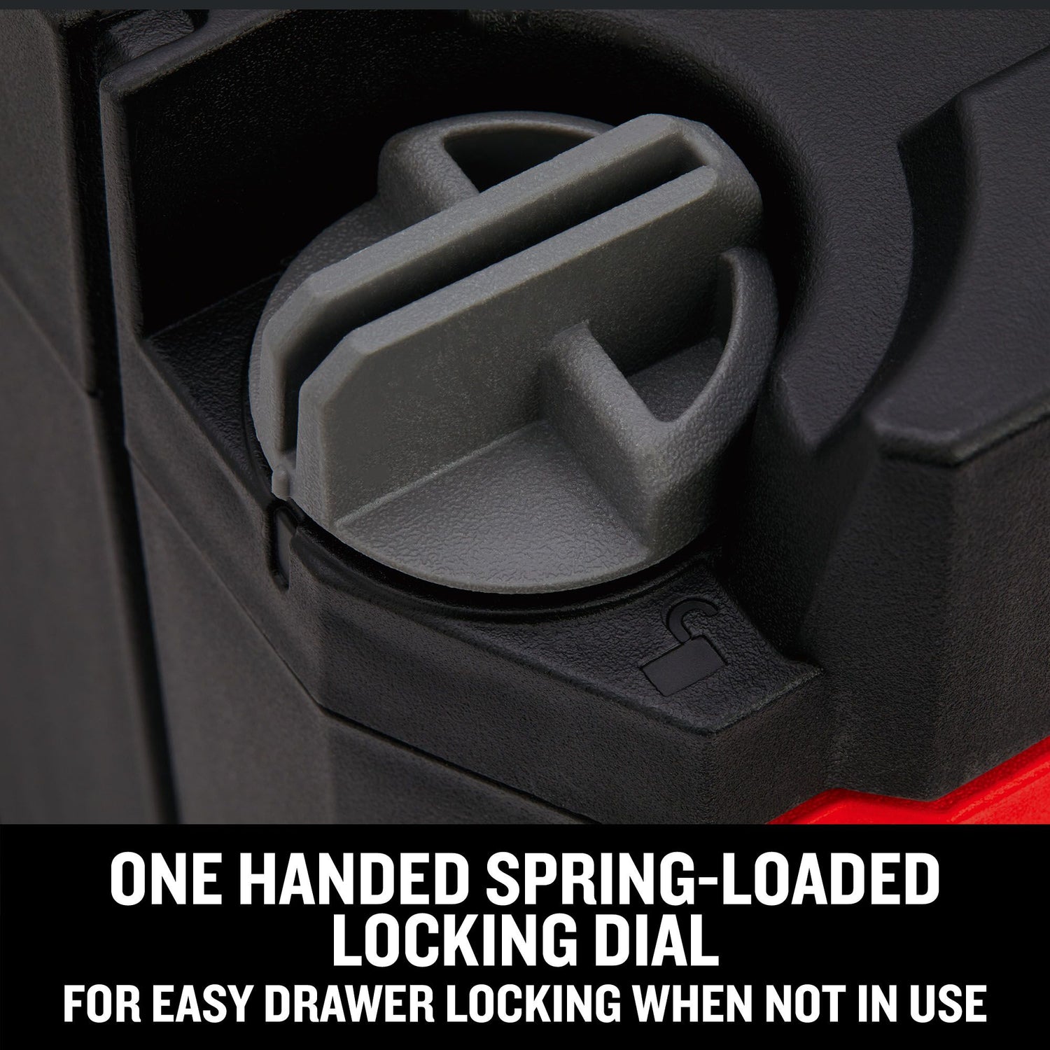 Designed for security and ease of use, its drawer lock dial quickly anchors the drawers in place when not in use to help prevent contents from falling out.