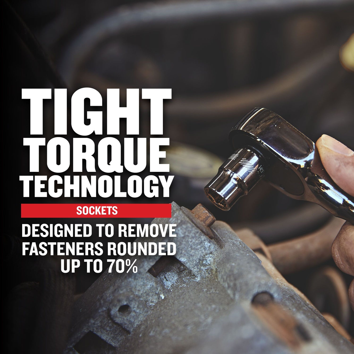 TIGHT TORQUE TECHNOLOGY™ - Complete difficult jobs with sockets designed to remove fasteners rounded up to 70%.
