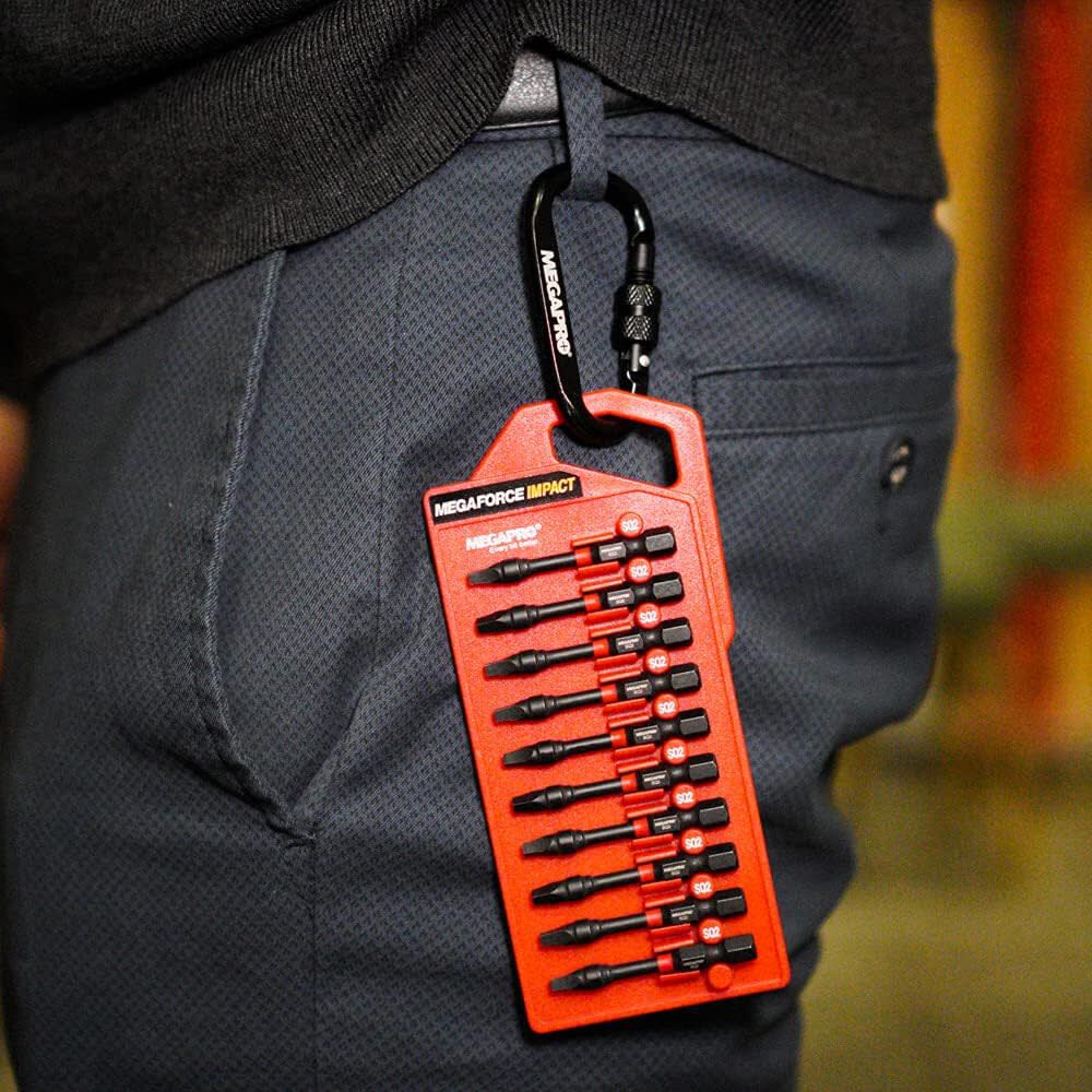 Each bit size is color-coded for easy-to-find selection and the pack comes with a carabiner clip that can be quickly attached to your toolbox or belt.