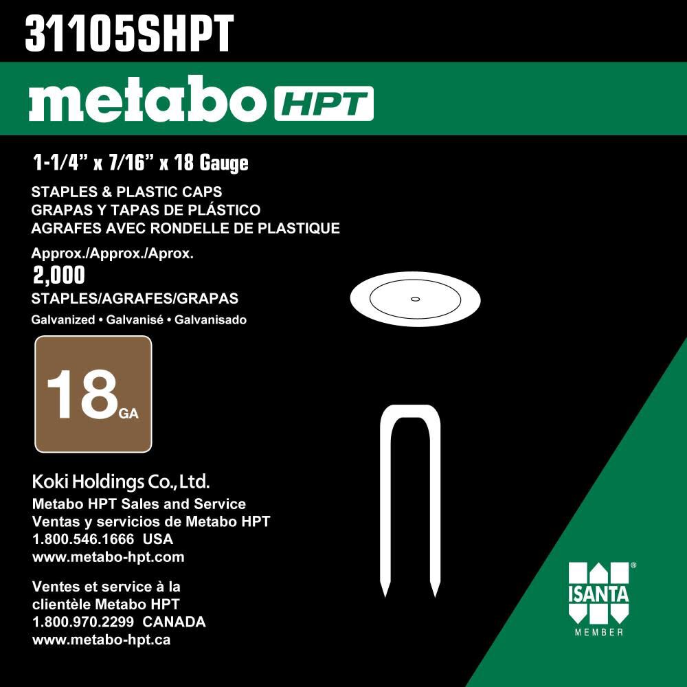 Metabo HPT 1 1/4in x 18 Gauge Staples and Plastic Caps 2000pk