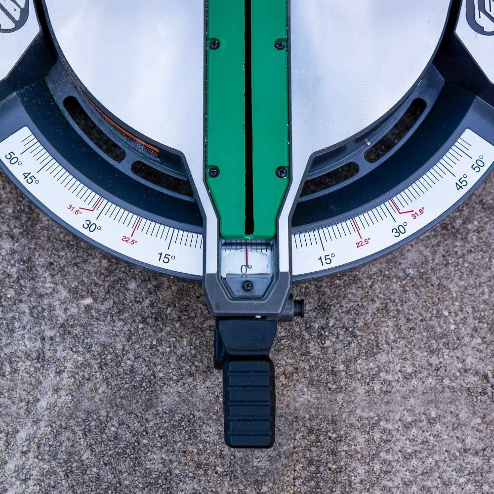 MITER RANGE: 0-52° to the right and left with detent stops a 0°, 15°, 22.5°, 31.6° and 45°