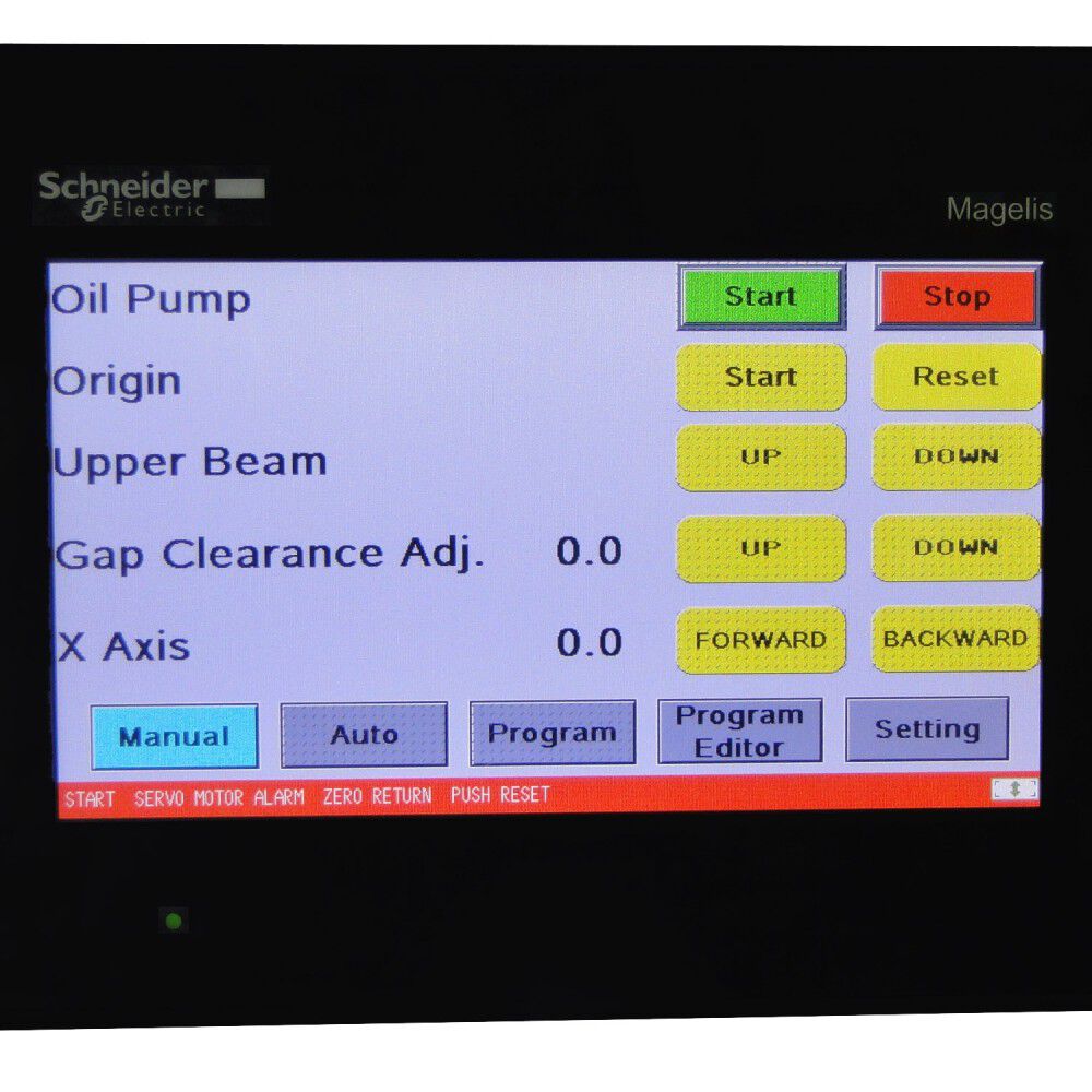 - Touchscreen NC controller, made by Schneider, and foot pedal make this shear easy to operate