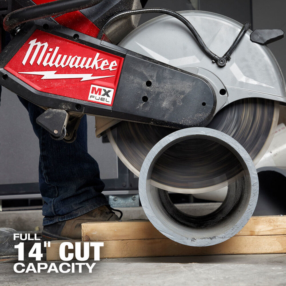 The MILWAUKEEÆ MX FUEL 14Äù Cut-Off Saw delivers the best 14Äù cut-off saw experience with full 14Äù cut capacity, fastest cuts from start to finish, and no gas headaches.