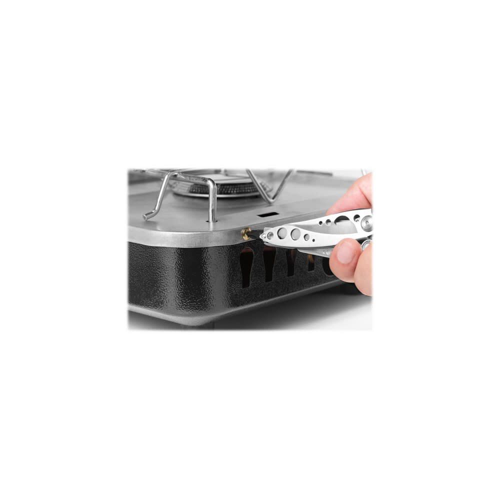 At a mere five ounces, the Leatherman Skeletool has a stainless steel combo blade, pliers, bit driver, removable pocket clip and carabiner/bottle opener.