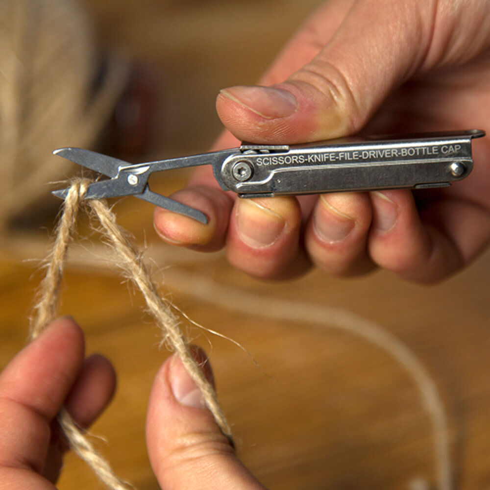 ThatÄôs smaller than a door key! This tiny tool is bursting with essentials - super-sharp scissors and knife, bottle opener, screwdriver, file and nail cleaner.