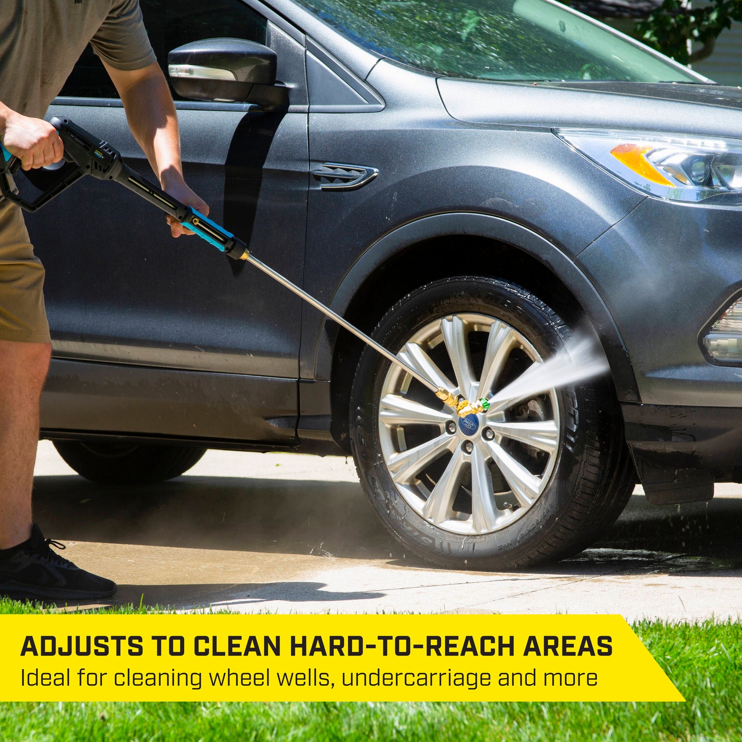 Ideal for cleaning undercarriage, wheel wells, gutters, eaves and more.
