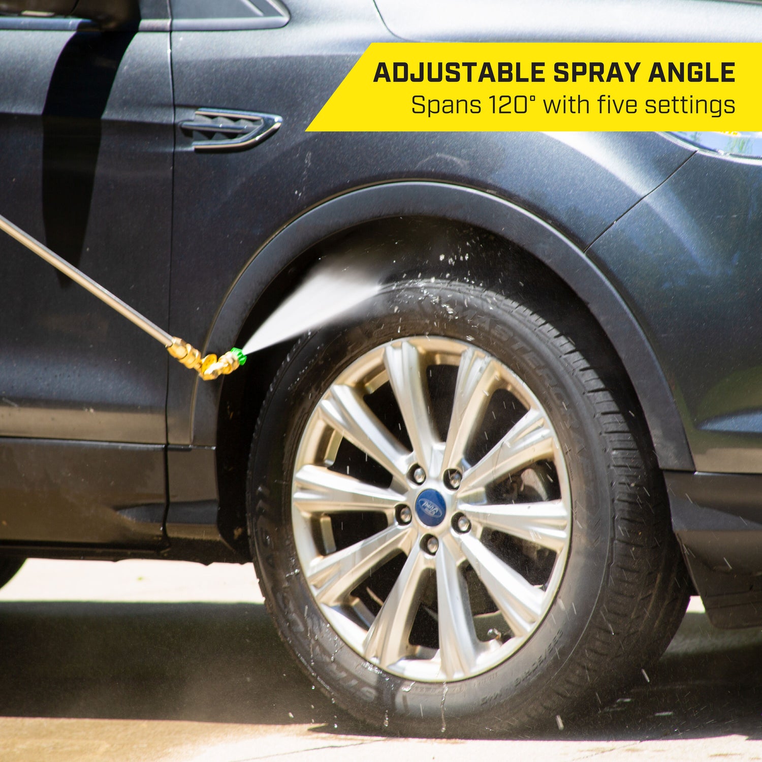 Adjustable spray angle spans 120 degrees with five settings