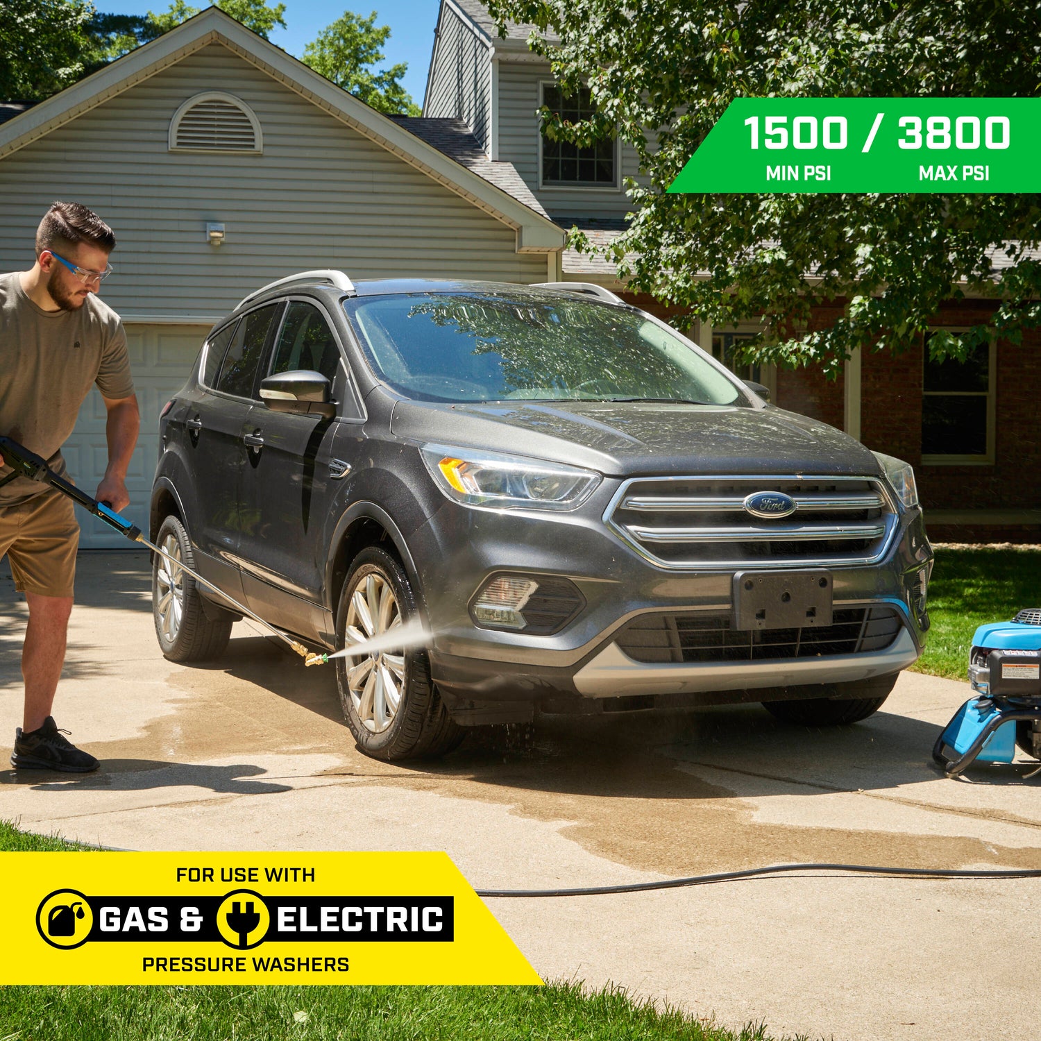 Suitable for use with pressure washers up to 3800 PSI maximum