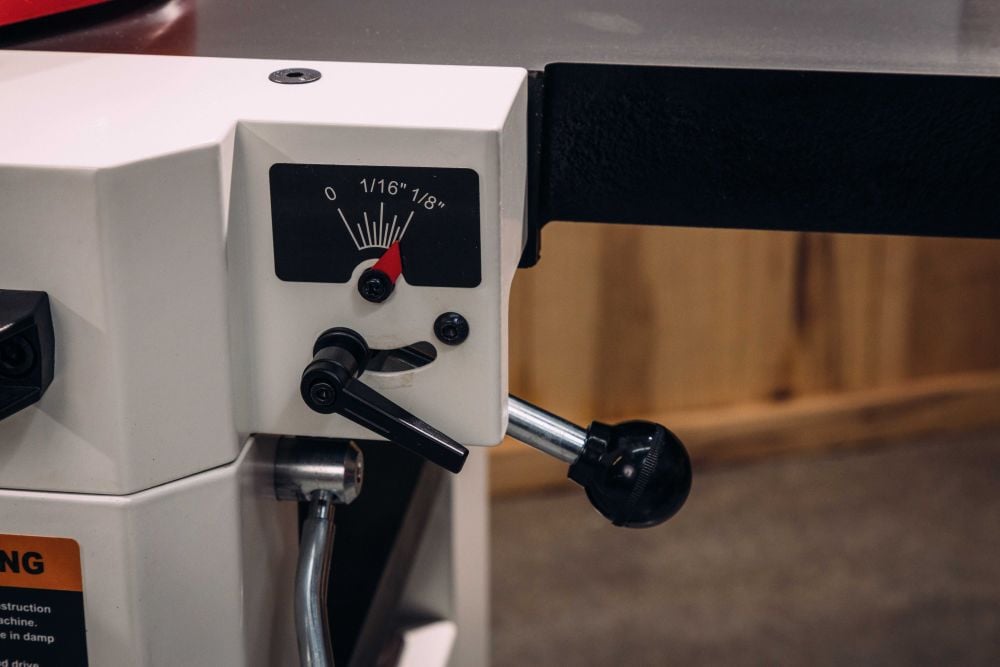 - Parallelogram design keeps the table close to the cutterhead for improved finish and allows for precise depth of cut adjustments.