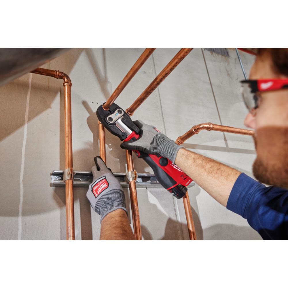 We've optimized the press tool jaws with an easy-open, inline design for one-handed pressing when used with M12 FORCE LOGIC Press Tools, the smallest, most intelligent MilwaukeeÆ press tools.