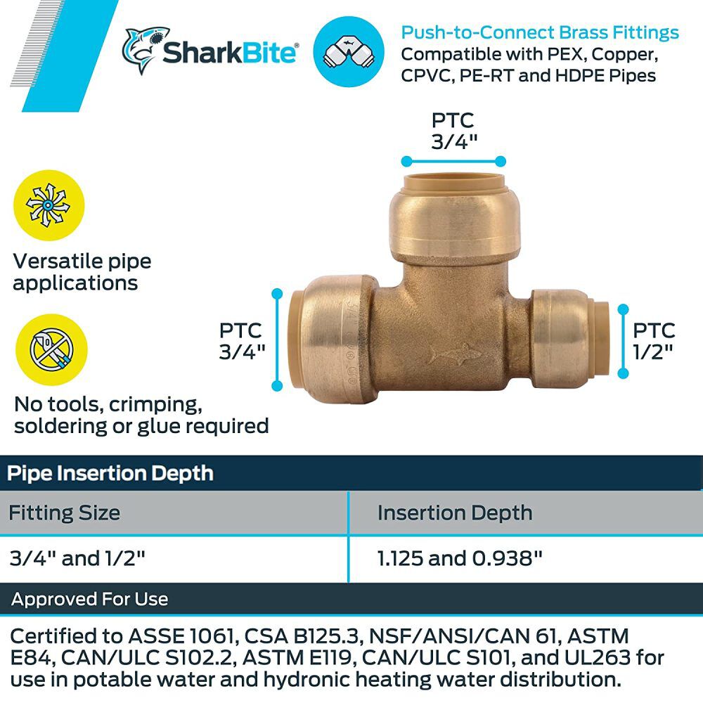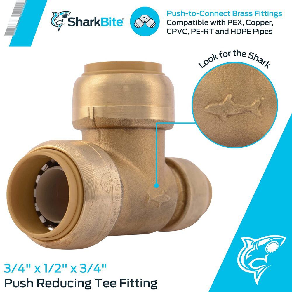 Sharkbite 3/4 x 1/2 x 3/4in Push to Connect Brass Reducing Tee