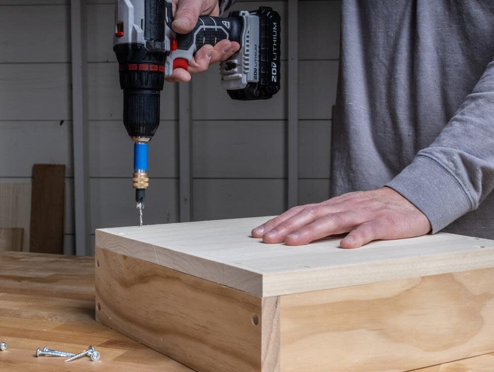 Drill a pilot hole and counterbore with one side, then drive a Kreg Screw with the #2 square-drive bit on the other side.