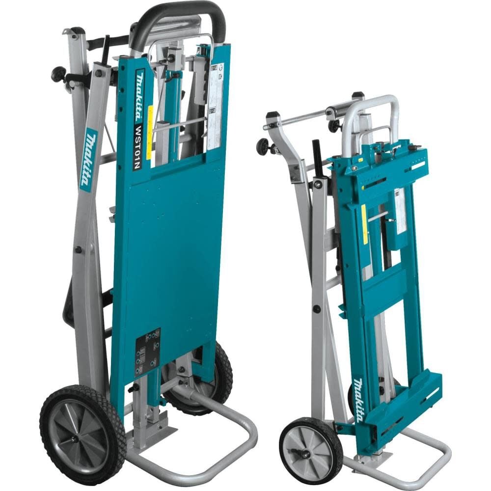The Makita large rising base miter saw stand is perfect for broad range of cutting applications including crown molding, baseboard, case and base and long wood materials.