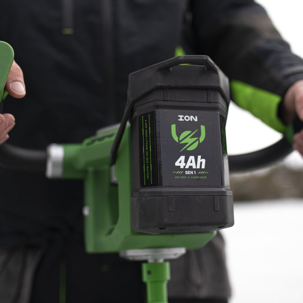- This Gen 1, 4 Amp-Hour battery provides drilling power of up to 1200 inches of ice per charge (with an 8" auger bit).