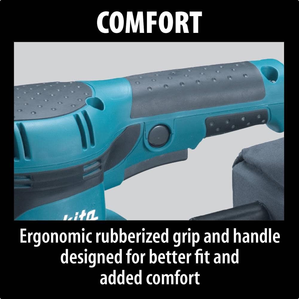 - Makita sander's through-the-pad system for collecting dust keeps work area cleaner